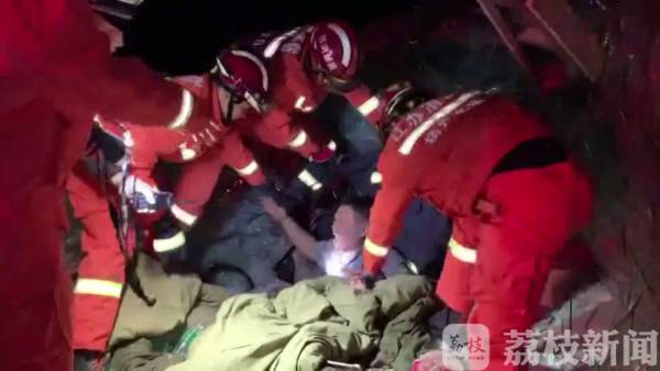 消防人员继续用液压顶杆将施救空间撑大,保证驾驶室有足够空间让人挪动,消防员将驾驶室旁的玻璃清理干净,使被困人员可以安全爬出,随后消防人员将其抬上担架并送上救护车。