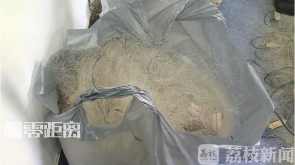 两人便划上小船,在棉花堤附近下网捕鱼。他们带着的是一种三层丝网,也是国家明令禁止销售的。这种渔网直径70厘米左右,外面一层网眼比较大,最里面一层比较小。即便是小鱼小虾撞进网里,到最里面网眼最小的一层也比较难逃脱。这也是渔业部门明令禁止使用的捕捞工具。