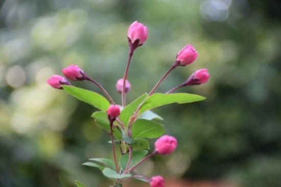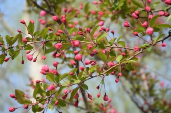 今年园内一共栽植有垂丝海棠、贴梗海棠、西府海棠、木瓜海棠,以及来自北美的冬红果、绚丽、凯尔斯、红宝石等海棠10余个品种,其中垂丝海棠达到600余株。