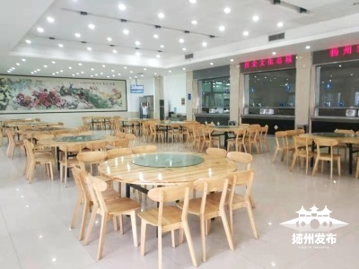在扬州市政府西大院的食堂门口,摆着一条“夹菜用公筷”文明就餐标语,食堂干净宽敞,桌子整齐摆放。“我们已经准备就绪,主要提供团餐,也有部分散客快餐。”机关生活服务中心相关负责人介绍,预计一次性服务容量为100人左右。