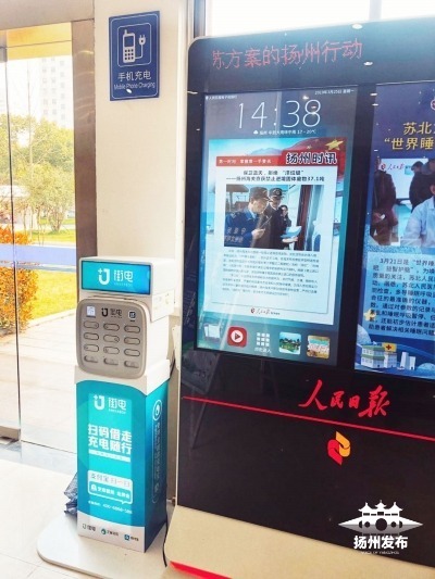 扬州政府西大院食堂的进门处,有充电站、热水台和雨伞存放处。两个移动充电站柜台,只要扫描二维码就可以随时租借充电宝。“游客来扬,除了品尝我们的美食,配套服务也一定要跟上,让他们享受到更好的服务。”