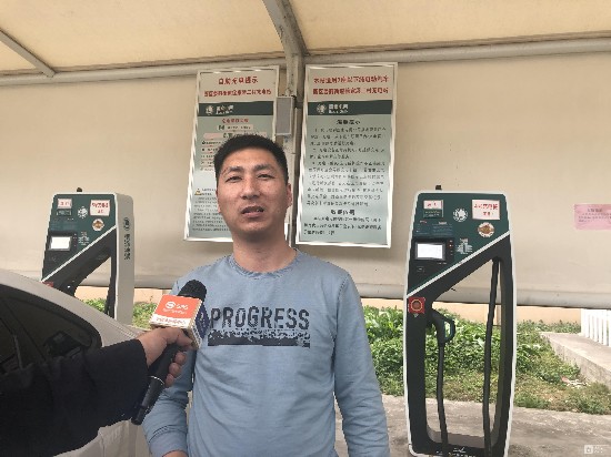 在东环路徐家浜二村充电站,新能源汽车车主张吉正在给车“加油”,他告诉记者,这两年充电桩多了,充电方便很多。充满电大概1小时左右,续航里程要达300公里。