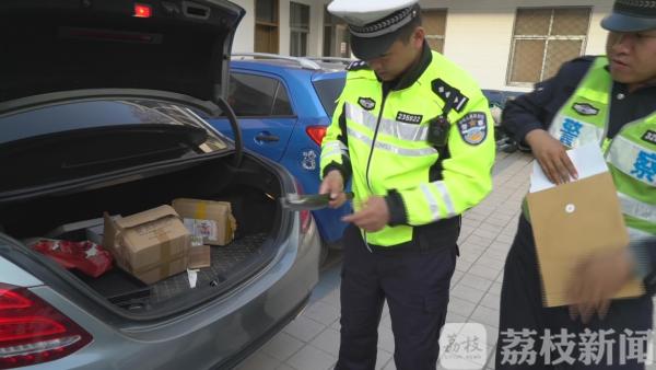 3月26日(昨天)下午4点钟,徐州沛县交警大队沛城中队民警,巡逻到迎宾大道迎宾小区门口时,发现一辆违停轿车。