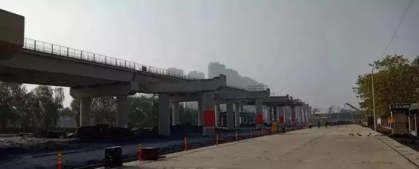 上跨桥完成情况:桥桩原设计104根,已累计完成桥桩103根,累计完成99%;立柱原设计104根,累计完成73根,完成70%;盖梁原设计50处,累计完成29处,完成58%;箱梁原设计192片,累计预制完成96片,完成50%;箱梁架设累计完成73片,完成38%。