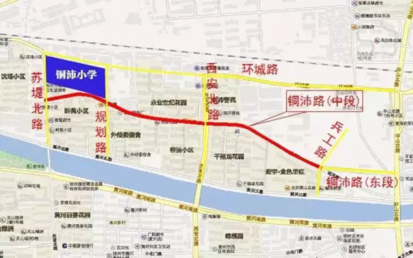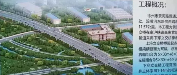 徐州市黄河路贯通工程起点位于迎宾大道和彭祖大道交叉处,沿黄河东路向西跨越京沪铁路,止于大学路,路线全长约11.57公里。2017年11月份, 黄河路与京沪铁路交叉工程开工,截止到目前: