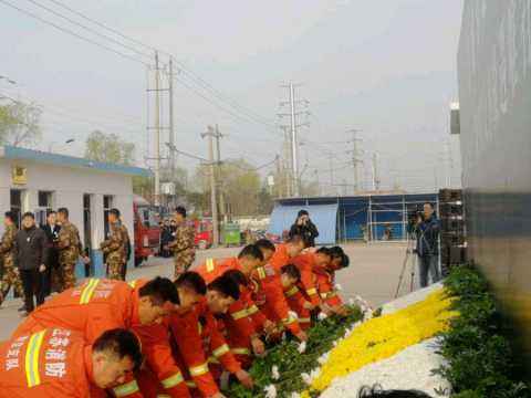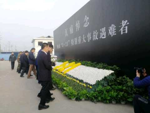上午7时30分,在该县生态化工园区内,江苏省副省长樊金龙、盐城市委书记戴源、市长曹路宝率事故工作组、参加救援的武警、消防、公安及遇难者家属代表、部分群众代表举行集体沉痛哀悼活动,并向事故遇难者默哀。(图文/人民日报客户端 王继亮)