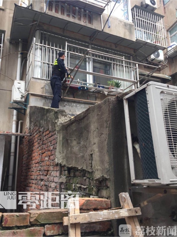 在观察了周边的环境后,出警的南京秦淮公安分局瑞金路警务站的民警方连绕到了这栋楼的另一面,准备从阳台找办法进入家中。在热心居民的帮助下,民警找来了一个梯子,小心地爬上了一楼屋顶,沿着屋顶走近了阳台。民警试着推了下窗户,发现并没有被锁住,赶紧打开了窗户,翻进去。进入房间后,民警闻到了一股糊味,走到厨房后发现是家里的煤气没关,灶台上还炖着东西。估计是主人出门前忘记关了。