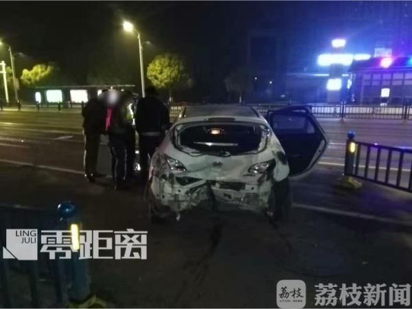 南京江宁东山交警中队的民警赶到现场时发现,宝马车被撞到了路边,还撞毁了几节护栏,肇事的奔驰车停在不远处的路边。