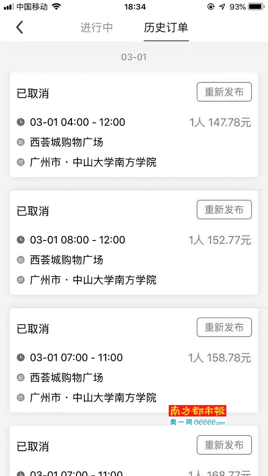 同乘的邓先生和朱先生则是通过哈啰出行软件发布的出行信息。据邓先生介绍,2月28日晚上11点,他通过软件发布了出行信息,软件计价显示费用为70多元。次日凌晨1点多,司机陆某安打电话给他要求取消订单,并报价90元。由于急需用车,且时间较晚也来不及另寻其他的车辆出行,邓先生便答应了陆某安的要求,但却忘记将订单取消。“当时因为时间很晚了,我比较困也忘记取消订单,后来早上七点多因为没有预付车费,订单就被平台自动取消了。”邓先生告诉南都记者说,“因为平台上没有支付,早上起来我又给司机打了电话问他还来不来,他说晚点过来。大概在八点半的时候我上了他的车。”