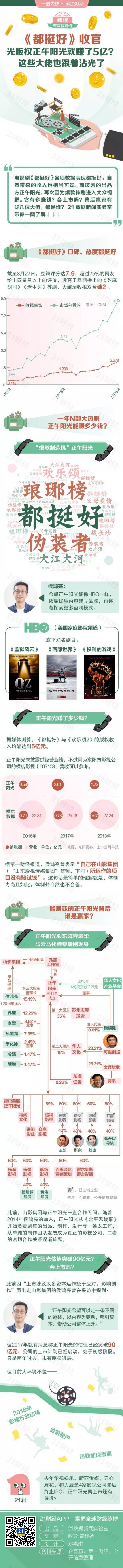 《都挺好》火爆,正午阳光收入也“都挺好”。它有多赚钱?会上市吗?幕后赢家有好几位大佬,都是谁?21数据新闻实验室带你一图了解。