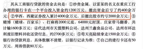 其余贷款被王爱萍用于赌博、炒股、炒原油、炒贵金属、购买高档进口轿车等挥霍一空,至今无力归还。其资金去向包括: