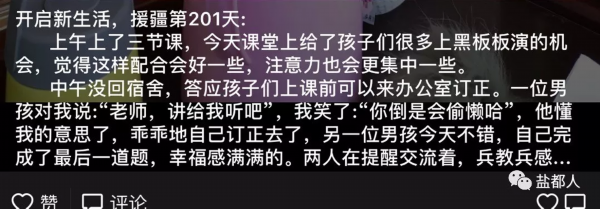 “8月26日,学生报到的第一天,看着孩子们忙碌欢快的笑脸,心里踏实许多,未来的一年半,我们一起加油!”这是徐维兰在察布查尔县任教伊始,在自己的朋友圈发布的第一篇日记,时至今日,在察布查尔已经205个日夜,日记的编号也到了第205篇,记者翻阅她的朋友圈,一篇篇饱含感情的文字,不但记录着她和丈夫援疆支教生活的点滴,更记录着夫妻俩对于边疆孩子的关心和帮助。