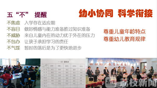 孩子今年9月上小学了,要不要提前学拼音、学算术?幼小衔接班值不值得报?昨晚,南京市鼓楼区在线教育项目——“宝爸宝妈学堂”第二讲上线,鼓楼幼儿园园长崔利玲、琅琊路小学校长戚韵东、天正小学校长王九红,与家长们讨论幼小衔接话题。