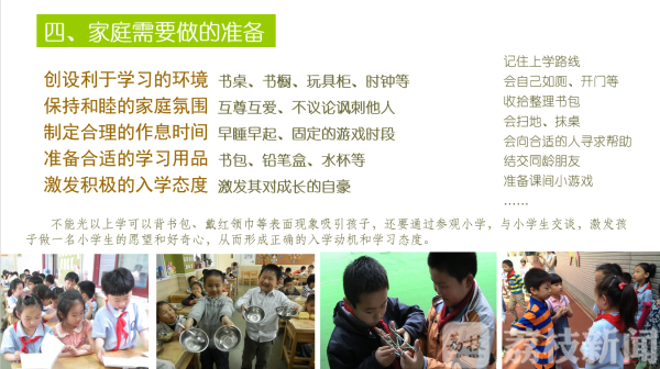 幼小衔接,知识的准备不是最重要的,能力的准备才是关键。崔利玲认为,幼小衔接要注重学习适应能力和社会性适应能力的培养。其中,学习适应力可以通过生活数学、听故事看图书等方式来进行,锻炼孩子理解和运用符号的能力;社会性适应力可以通过经常给孩子布置小任务,来锻炼孩子的自信心、主动性、积极性、任务意识和规则意识。此外,幼小衔接要注意五不:不焦虑、不盲目、不威胁、不包办、不气馁。下面来看鼓楼幼儿园园长崔利玲写的具体攻略: