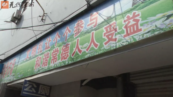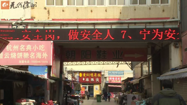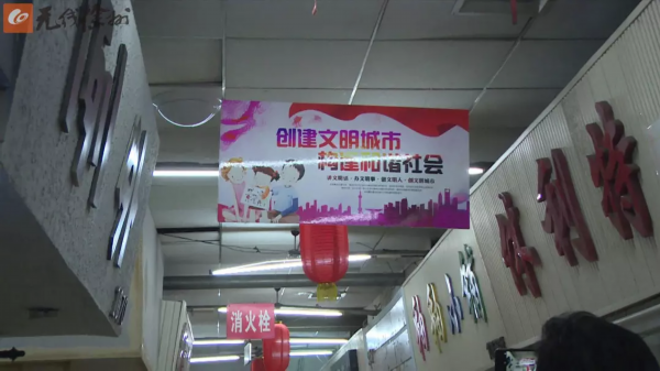 徐州朝阳集团常务副总经理王楚汉介绍,之前在2017年文明城市创建的时候,市场内已经悬挂了不少标语。但后期在消防改造期间,有部分脱落、掉色,市场管理方也没有及时修补。