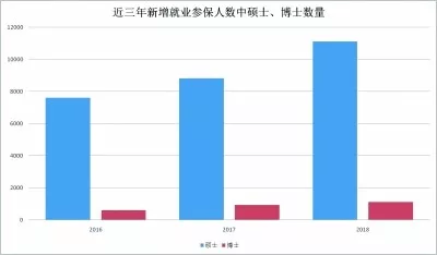 【数据】2018年1—12月新增就业参保大学生中,大专19.9万人、本科13.03万人、研究生11103人、博士1093人,本科以上合计14.25万。