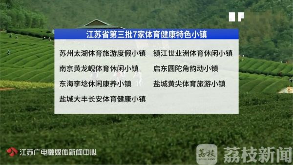 在一年一度的江苏体育产业大会上,江苏省第三批7家体育健康特色小镇名单出炉,它们分别是:苏州太湖体育旅游度假小镇、镇江世业洲体育休闲小镇、南京黄龙岘体育休闲小镇、启东圆陀角韵动小镇、东海李埝休闲康养小镇、盐城黄尖体育旅游小镇、盐城大丰长安体育健康小镇。