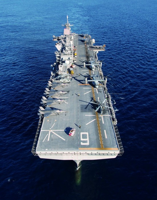 比日本更加速部署隐形战机的是驻日美军。据日本共同社3月31日报道,美国海军计划今年在日本佐世保基地部署性能更先进的两栖攻击舰“美国”号,替换目前部署的“黄蜂”号。据介绍,“美国”号是美海军最早为搭载F-35B隐形战机而接受改装的两栖舰艇之一,它进行了专门的优化设计,通过更大的飞行甲板和机库,保证F-35B的出动效率。报道称,美海军计划由搭载F-35B的两栖攻击舰及宙斯盾驱逐舰组成“强化型”远征打击群。按照美国《海军时报》的说法,“美国”号的部署“将向亚洲盟国和潜在敌人释放强有力的信号”。