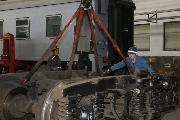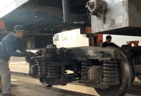 车体整体架起将转向架推出