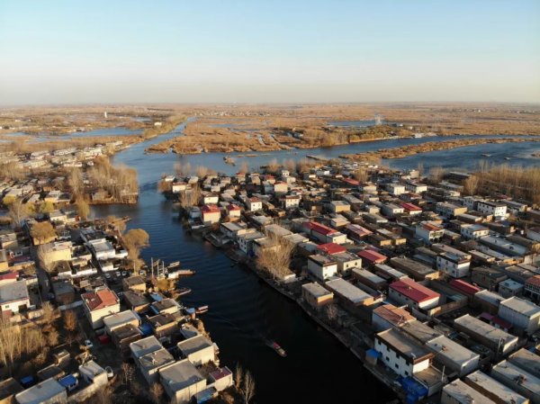 雄安新区白洋淀上的村庄(2018年12月6日无人机拍摄)。新华社记者 邢广利 摄