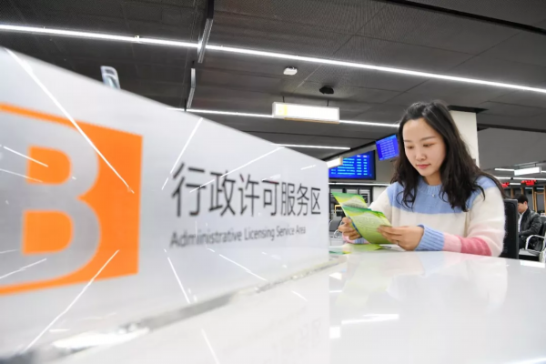 企业人员在雄安新区政务服务中心内翻看服务指南(1月16日摄)。新华社记者 牟宇 摄
