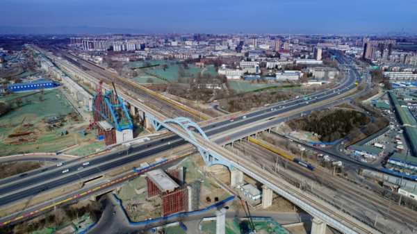 位于北京黄村的建设中的京雄城际铁路(2019年1月5日无人机拍摄)。新华社记者邢广利摄