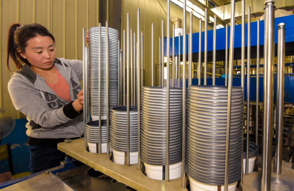 3月27日,在一家从雄安新区外迁到河北省故城县的塑胶包装企业,工人在对塑胶花盆底部进行打孔。新华社记者 李晓果 摄