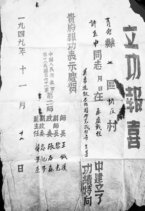 与此同时,河北沧州传来消息:许玉忠烈士的亲属找到了,还找到一份立功报喜证书。