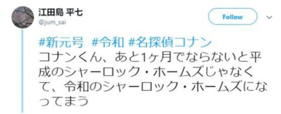 江田岛 平七:柯南君,再过不到一个月可就不是平成的福尔摩斯,而是令和的福尔摩斯了哦