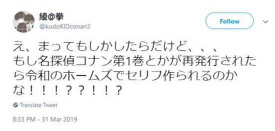 绫@拳:诶,等一下,要是柯南第1卷再发行的话,是不是要把台词改成令和的福尔摩斯了?!