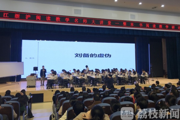在“江浙沪阅读教学名师大讲堂”活动现场,来自上海师范大学附属中学的语文特级教师余党绪,给燕子矶中学的学生上了一堂《三国演义》阅读课。余党绪认为,语文阅读量少、质次、结构不合理,是高中普遍现象,学生的长文、整本书阅读量明显不足。