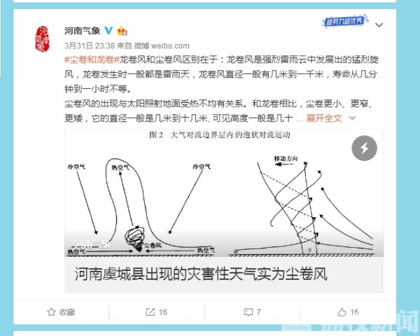 来自河南省气象台的消息,称掀翻蹦蹦床的天气现象并非“龙卷风”,实为尘卷风,直径10米左右,持续时间3到4分钟。