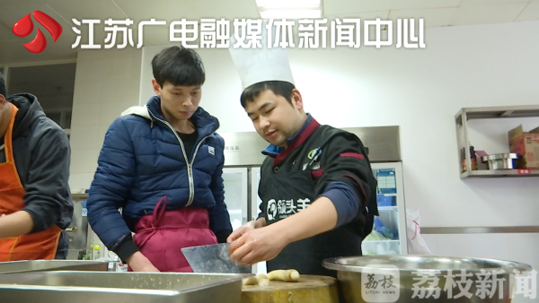 说是老员工,其实彭俊也就来了两个月。不过,他已经练成了一手娴熟的刀工,成了帮厨主力。现在,他还跟着主厨学烹饪,希望未来能成为真正的大厨。