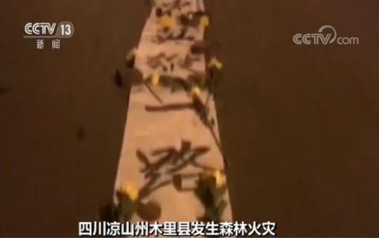 4月2日凌晨1点左右,在西昌市区通往殡仪馆的道路中间,市民自发摆放了菊花,白色的条幅上写着“救火英雄一路走好”,还有人点燃了蜡烛,并将蜡烛摆成了心的形状。尽管已是午夜,大家仍自发守候在街道两旁,等候着在火灾中牺牲的救火英雄归来。