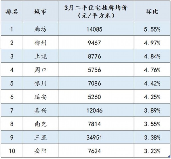 59个城市挂牌价环比上涨,廊坊涨幅最大