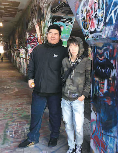 美国亚特兰大有一个很有名的涂鸦隧道——克罗格街隧道,刘天宇(左一)和他的朋友当时在准备有关这条隧道的演讲,二人亲自前往隧道观察体验。