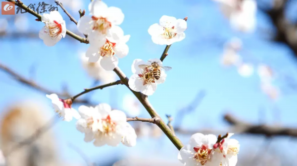 一进入龟山探梅园,仿佛来到了“梅花世界”,褐色低矮的梅树上,各色梅花妖娆多姿,红梅艳丽出众、白梅冰清玉洁、绿梅还未完全绽放,别有一番景致。
