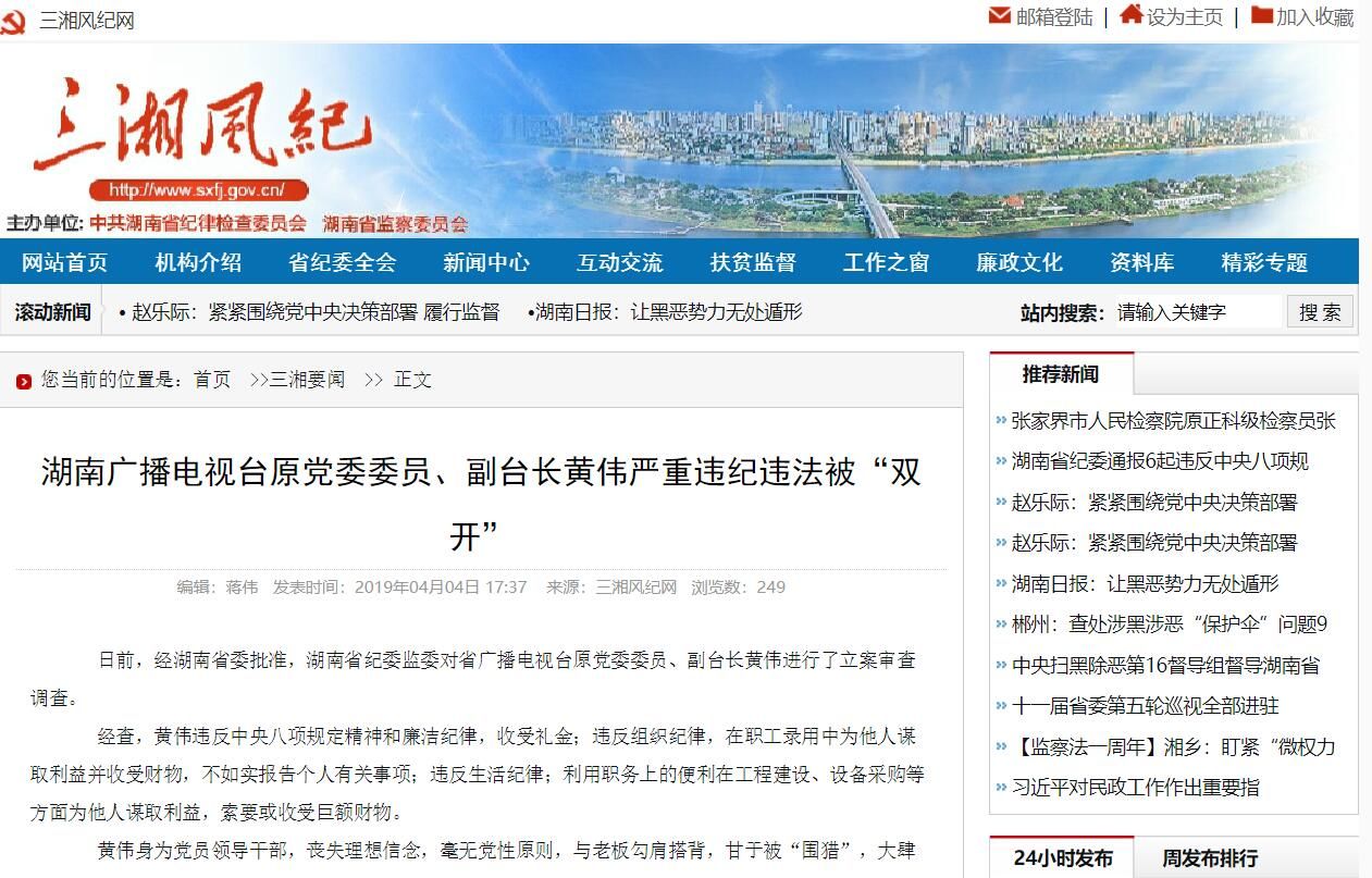 荔枝新闻讯 据湖南省纪委监委网站4月4日消息,日前,经湖南省委批准,湖南省纪委监委对省广播电视台原党委委员、副台长黄伟进行了立案审查调查。