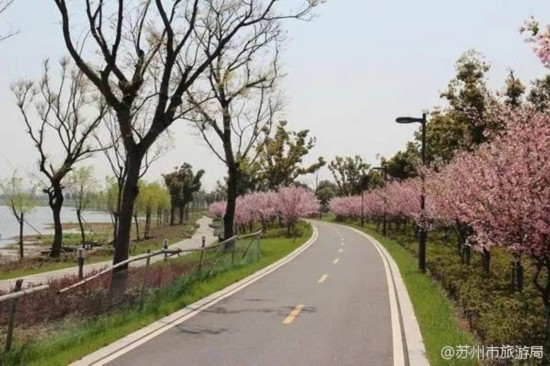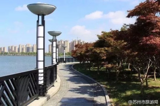 娄江景观步道位于娄江南岸,西起东环路向阳桥,向东接金鸡湖环湖步道,总长约5公里。围绕“水乡居住”、“工业新风”、“凤凰来仪”三大主题。//环古城河健身步道//环古城河步道是苏州最有名的健身步道,步道全长15.5公里,集休闲、健身于一体,目前已全线贯通。