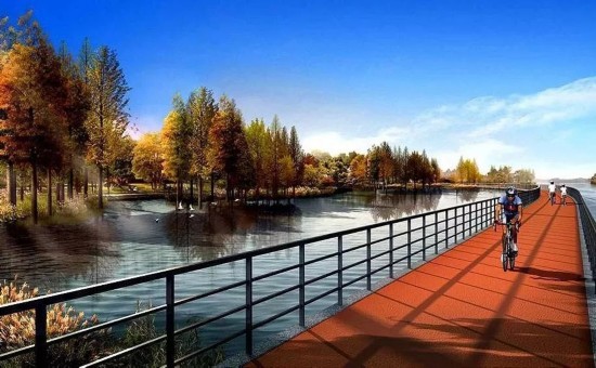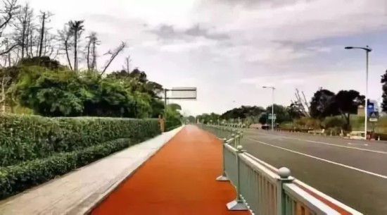 步道两侧还有专门为行人、跑步运动者、自行车骑行者使用的自行车专用道,约1.25—1.5米,采用彩色防滑涂料层罩面,不管是散步还是骑行,都会是一个好心情呢~