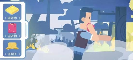 森林火灾对人造成的伤害主要来自高温、浓烟和一氧化碳。因此,撤离时,附近若有水源,可以使用浸湿的毛巾、衣物、帽子等捂住口鼻,防止烟雾窒息。