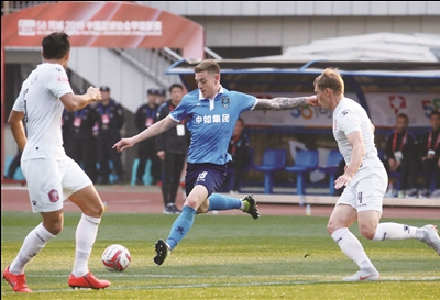 6日,遭遇三连败的中甲新军南通支云队迎来赛季主场第二战,在被罚下一人的情况下,全队众志成城,最终以4∶2力克劲敌新疆雪豹纳欢队(上图,江建华摄)。