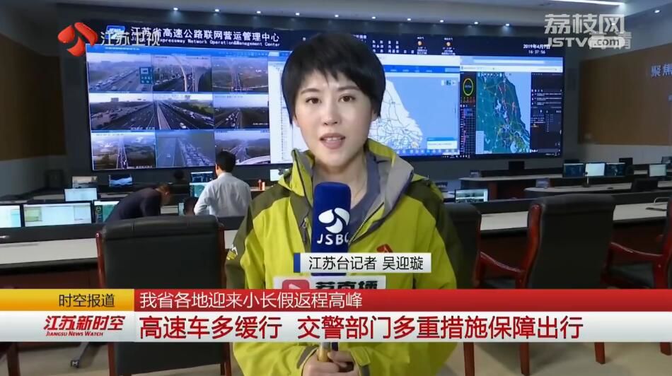 江苏台记者吴迎璇:我现在所在的位置是江苏省高速公路指挥调服中心,大家从我身后的大屏上可以看到,全省清明小长假的返程高峰已经到来了,全省8条过江大桥,现在除崇启大桥外,其它都出现了车辆较多、车速较慢的情况。