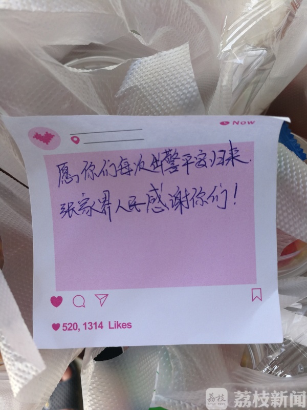 4月4日晚,张家界市一名外卖小哥接到匿名电话,给消防员点了牛奶和披萨,只留下一张纸条写着“消防员先生,你们辛苦了!”外卖小哥来到永定消防中队岗亭,放下东西匆匆跑了。永定消防中队消防员马嘉焕表示这是自己参加消防队伍以来第一次遇到,心里暖暖的,感觉平时的付出都是值得的。