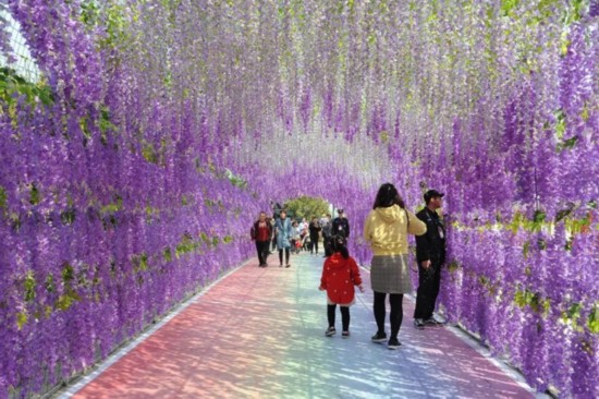 穿过浪漫满满的紫藤长廊