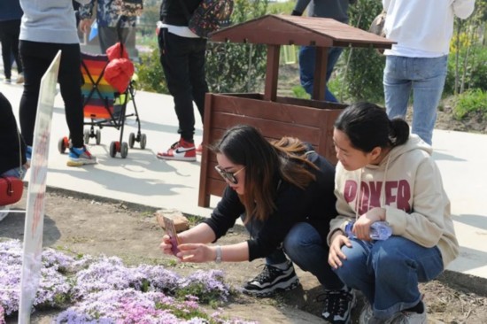 欣赏着美丽的花朵