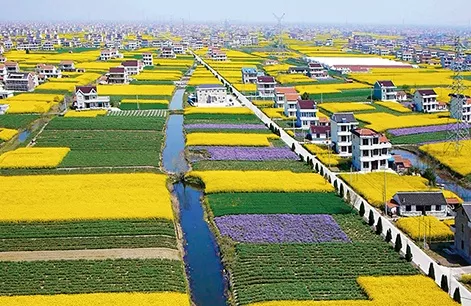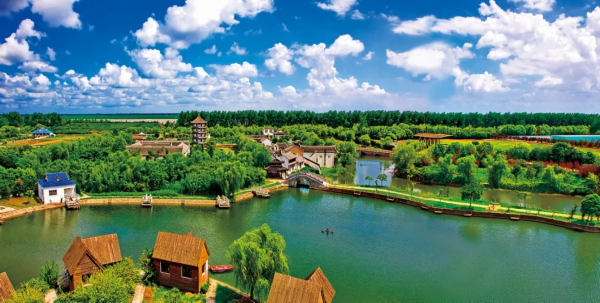 碧水环绕,阡陌纵横,林木葱茏