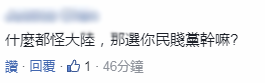对此,有岛内网友批评民进党称,什么都怪大陆,民众选你干嘛?