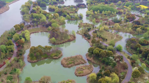 梁鸿国家湿地公园现场负责人吴秋君表示公园内有片水域叫野鸭湖,每天傍晚这里会有上百只野鸭栖息。野鸭非常胆小、警惕性高,我们公园特意给它们营造了环境好没有游客惊扰的小岛,让它们感到安静。……公园内,有自然的水系环绕,通过浅滩和深水区相结合,种植芦苇等植被,营造出了丰富的生态环境,生态环境多样化,生物多样性自然就好了。
