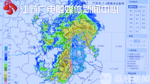 江苏省气象台首席预报员韩桂荣表示,降水是沿淮这一线比较强,风主要是两部分:一个是北边,主要是东风比较强,基本上是8级左右;还有就是南面沿江苏南雷雨大风,雷雨大风的特点就是迅速,时间快,基本上8到11级,像句容今天测到了28.3米每秒,达到了11级的风。